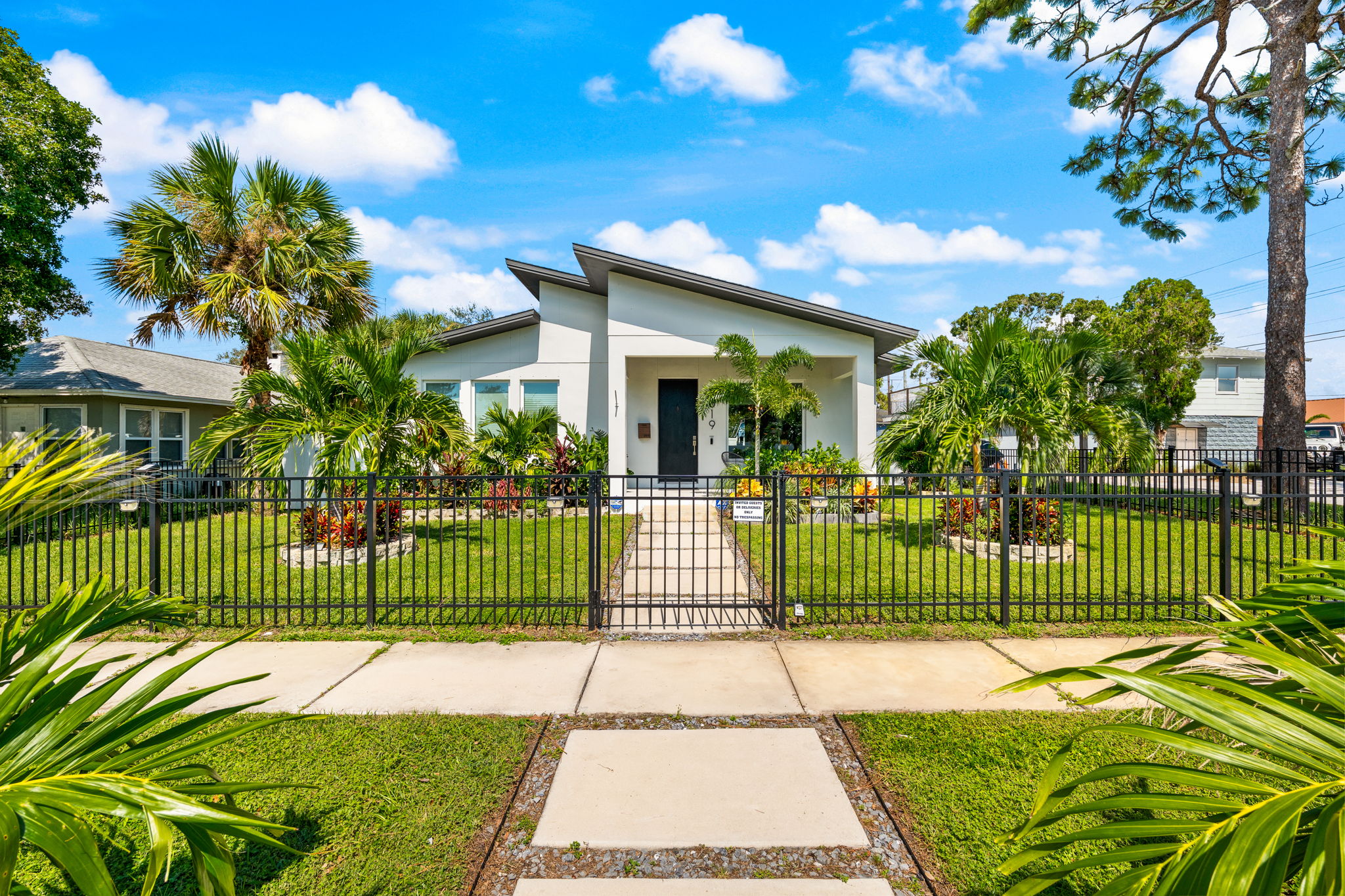 Built by the acclaimed Kasper Modern and even featured on HGTV, this stunning 2-bedroom, 2.5-bathroom Mid-Century Modern home in St. Petersburg’s Warehouse Arts District is nothing short of perfection. Nestled just a short walk from Central Ave, I-275, and the Pinellas Trail, this home offers both style and convenience. The design is a bold mix of retro and modern with beautiful natural wood accents, vibrant pops of color, and an abundance of natural light that flows throughout the space. The property also includes an attached garage at the rear, adding to the convenience of this well-thought-out layout. What sets this home apart are the personal touches the owner has added—custom window shades, hurricane shutters, a sleek dry bar with a beverage chiller, custom tile backsplashes, a newly installed privacy fence, and a contemporary paver patio out back. The yard is a standout feature too, offering plenty of space—a rare find in this part of St. Pete. Inside, you’ll find two spacious master suites, each with their own en-suite bath and walk-in closet. The half bath for guests ensures privacy, and the open living and dining areas flow effortlessly from the front entrance to the covered lanai—perfect for entertaining or relaxing at home. The chef’s kitchen features custom cabinetry, quartz countertops, and stainless-steel appliances, making it as functional as it is beautiful. This home was designed to maximize every inch of space. With an attached 2-car garage, laundry room, and thoughtful upgrades throughout, it’s clear that no detail was overlooked. Location-wise, you’re in the heart of the Warehouse Arts District, with Downtown St. Pete, the Pier, Urban Stillhouse, The Factory, and The Fairgrounds all within easy reach. This is a vibrant, artistic neighborhood that’s rapidly growing, making this home not just a place to live, but an investment in a prime location. It’s move-in ready and comes with peace of mind, thanks to a transferrable lifetime termite warranty, nine years left on the Builder 2-10 warranty, and individual warranties on all appliances. If you’re looking for a stylish, modern home in an unbeatable location, this is it. Whether you’re looking to move in or invest, this property is a true gem.